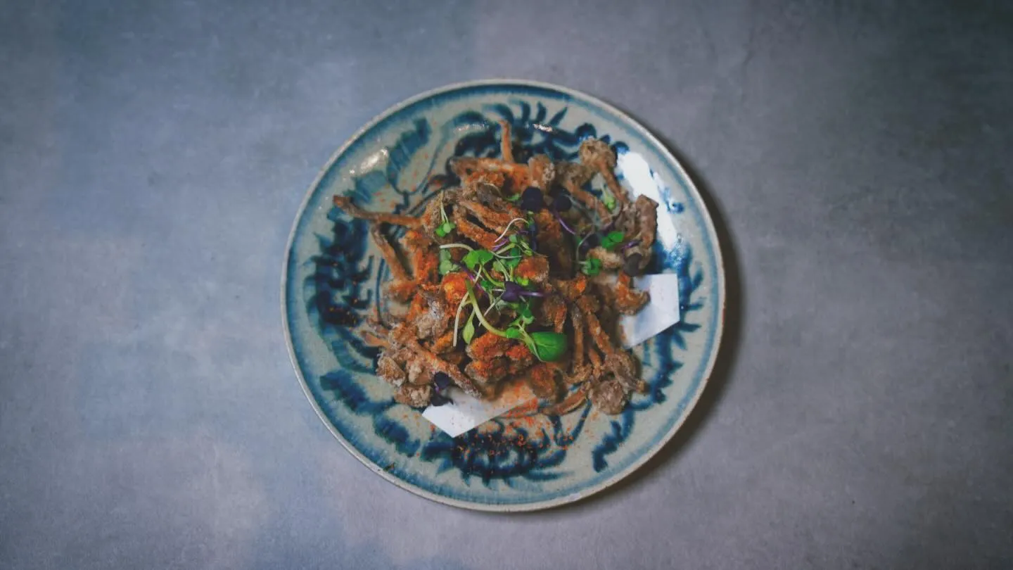 株取りなめこのスパイス唐揚げ なめこをカラッと。 自家製スパイス塩とライムで!🍋🟩 揚げ物だけどヘルシーな一皿。